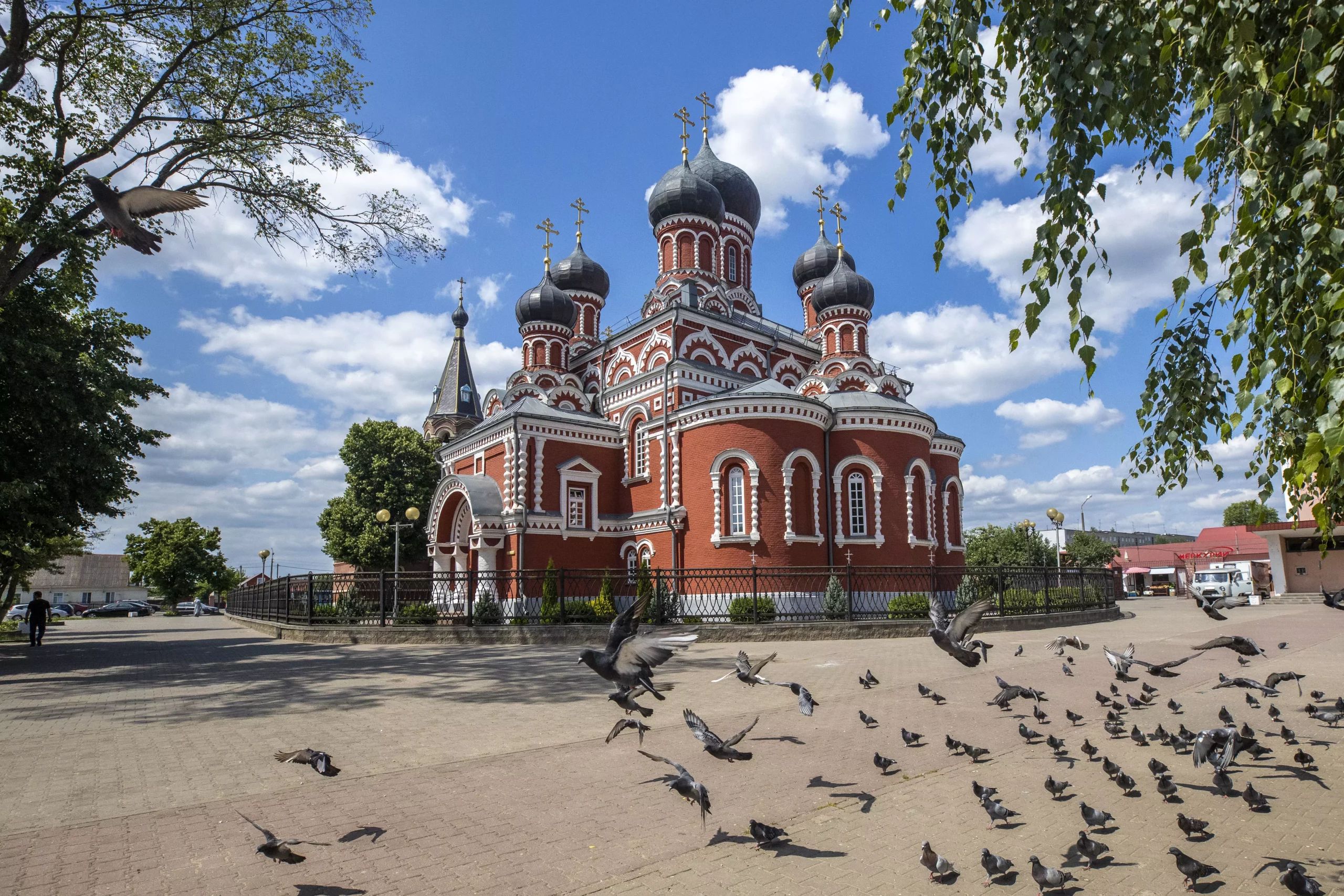 The construction of the Resurrection Cathedral was started in September 1871. In October 1874, the first divine service was held in the church, at which the Minsk governor was present together with high-ranking clergy. The Resurrection Cathedral in Borisov, designed by engineer Peter Merkulov, is one of the brightest examples of the pseudo-Russian style, which is characterized by a spectacular multi-dome composition, an abundance of decorative elements: kokoshnikov, corner columns, platbands. An integral part of the temple complex is the brama bell tower, which was erected in 1907 on the initiative of the then church elder Neil Burtsev.