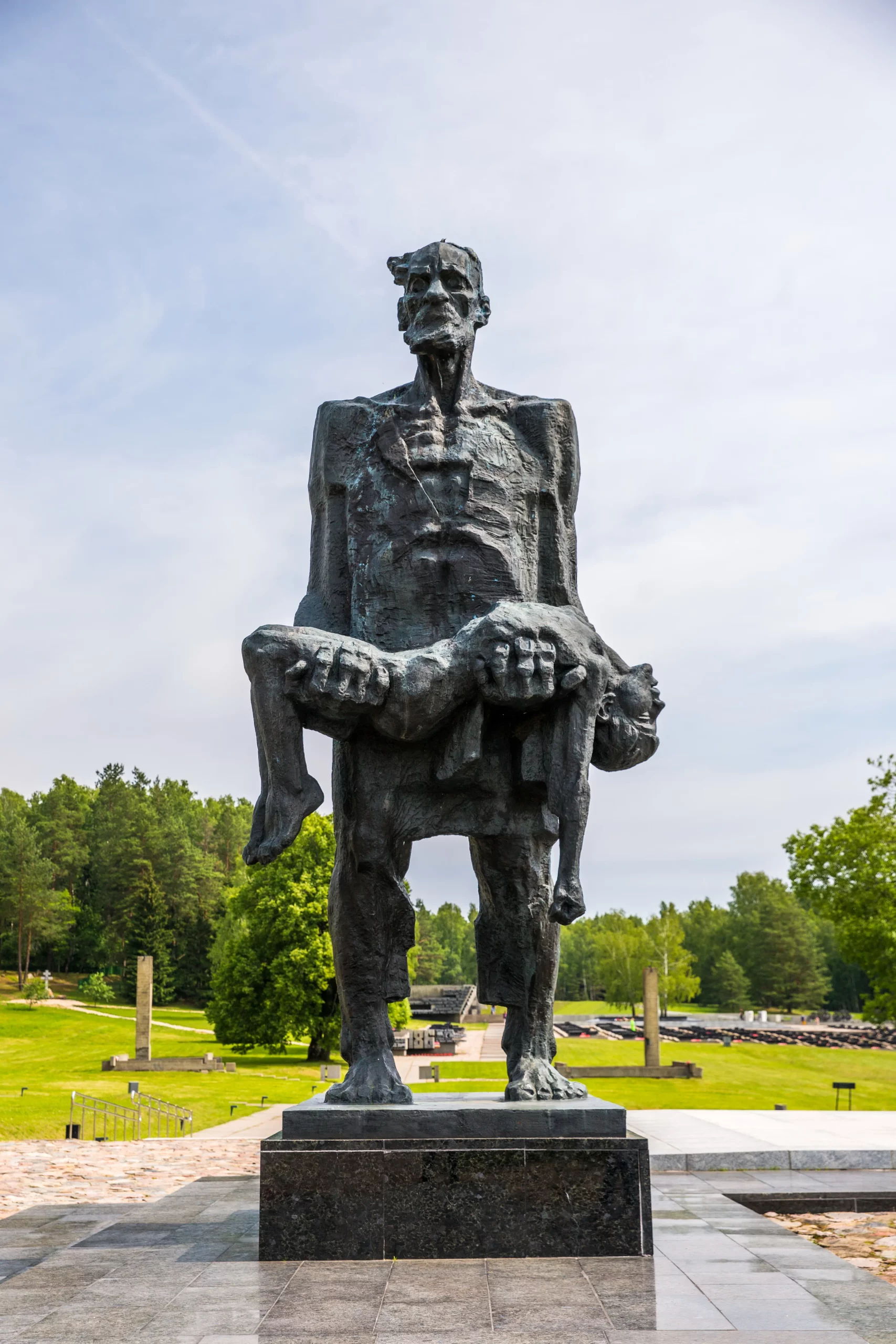 In the spring of 1943, the village of Khatyn with all its inhabitants was destroyed by the Nazis. The same fate befell 628 Belarusian villages, about 200 of them were never restored. Khatyn has become a symbol of tragedy and sorrow for the people of Belarus. The memorial complex follows the layout of the former village. On the site of each burned house there is a monument-a log house, inside of which there is an obelisk with a bell. In the center of “Khatyn” – a six-meter sculpture “Unconquered”. The image for the sculpture, depicting a man with a dead boy in his arms, was 56-year-old Joseph Kaminsky – the only one who managed to get out of the flames alive. His son died in his arms from wounds and burns.