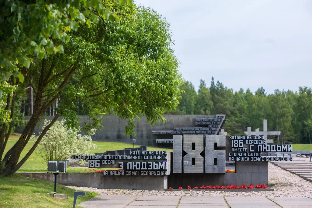 The memorial complex also includes a Village Cemetery. From 185 burned Belarusian villages, urns with earth were brought here. In the center of the so – called Memorial Square, there are three birch trees, and in the place of the fourth-the Eternal Flame, which symbolizes every fourth resident of Belarus who died during the war.