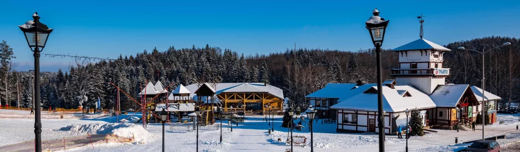 Ski sports and recreation complex “Logoisk” offers 5 illuminated trails with a total length of 3679 m and a height difference of 82 m, which are equipped with a four-seat cable car with a capacity of 2 thousand people per hour (ascent time is about 5 minutes). There is also a tow lift. Snow cannon and modern equipment for processing slopes always ensure a good condition of the trails. For beginners, there is a training slope (height 11 m, length 120 m), where vacationers can use the services of professional instructors, as well as rent the necessary equipment. It has become a good tradition to hold night skating in winter, folk festivals “Kalyady” and “Maslenitsa”, as well as numerous competitions and demonstration performances of athletes.