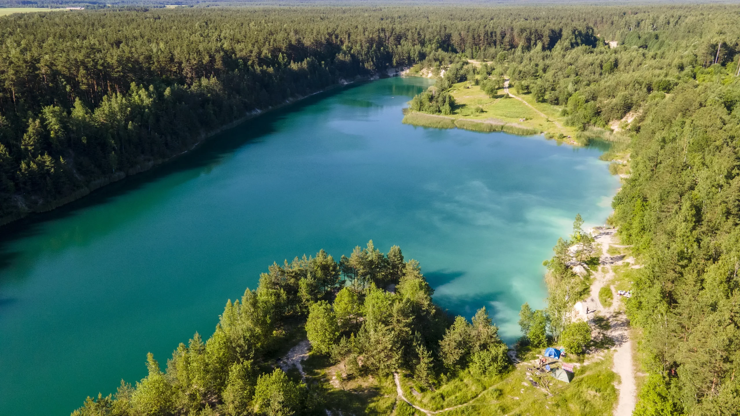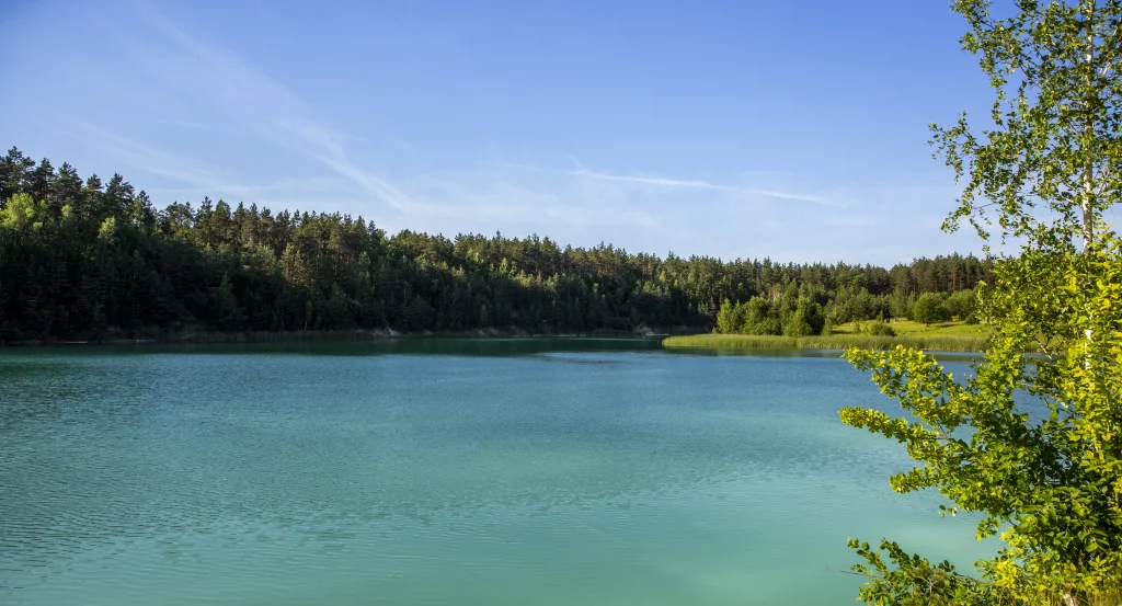 Near the village of Khotinovo there are “Belarusian Maldives” – amazingly beautiful chalk quarries filled with water. Previously, lime deposits were located here, today two quarries with azure water, light pine forest nearby are very popular with local residents and guests of the region. But we must remember that the shores are white because of their chalk composition, which becomes very slippery when in contact with water.