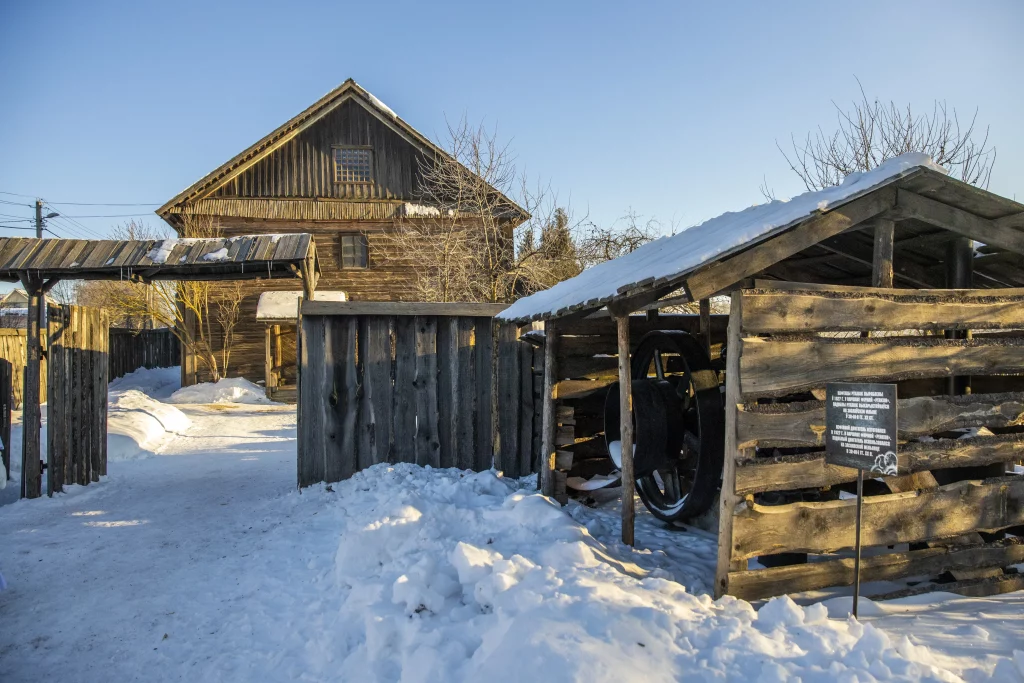 The complex includes four buildings: a steam mill (mlyn), a hut of import workers, a barn (sviran) and a blacksmith shop. The mill was built in 1910 and operated until 1989. In the 1990s, it was restored and became part of the museum complex. Near the mill, theatrical performances with the participation of a Miller (Mlynar), performances of folk folklore ensembles, battle performances are arranged.