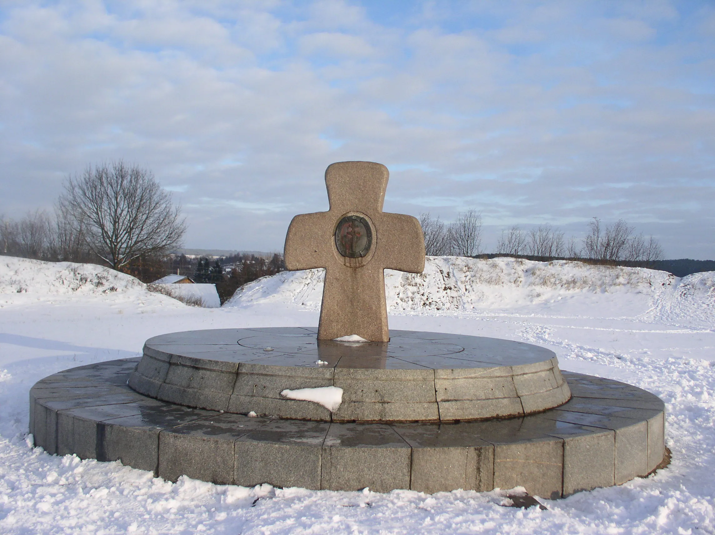The ancient settlement “Zamechak” is the most ancient archaeological monument of Zaslavl. This place is popularly called “Rogneda’s Grave”. The small platform has a round shape and is surrounded by a moat and an earthen rampart. Excavations have shown that in the X century there was a fortified castle town here. This was the same chronicle city that Vladimir built for Rogneda and Izyaslav. The kurgan burial ground of the late X-early XII century belongs to the ancient city – the largest burial ground of the Old Russian period in Belarus. In 1992, a memorial sign in the form of a stone cross was installed on it.