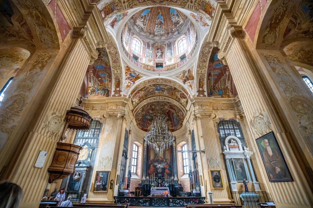 It was built in 1587-1593 according to the project of the Italian architect Giovanni Maria Bernardoni by order of Nikolai Christopher Radziwill “Orphans”. The church was handed over to the Jesuit Order and became the first Baroque building in the territory of the Polish-Lithuanian Commonwealth. The temple is richly decorated with paintings not only inside, but also outside, which became known after the last restoration. Most of the frescoes were made in the 1750s and 60s by Radziwill artists, among which the figure of K. D. Gessky stands out. In the interior of the church there are many sculptural images — bas-reliefs and busts of tombstones of the XVII-XIX centuries, marble altars and monuments. Above the entrance to the temple there are choirs with an organ. In the basement of the church is the ancestral crypt-the tomb of the Radziwills, which contains about seventy graves of the dynasty. Today, the Farny Church is undergoing a large-scale reconstruction, divided into three stages. The roof was repaired, the facade of the building was restored, engineering networks were replaced, a boiler room was erected to provide the building with heat. The project includes the renovation of the crypt (tomb).