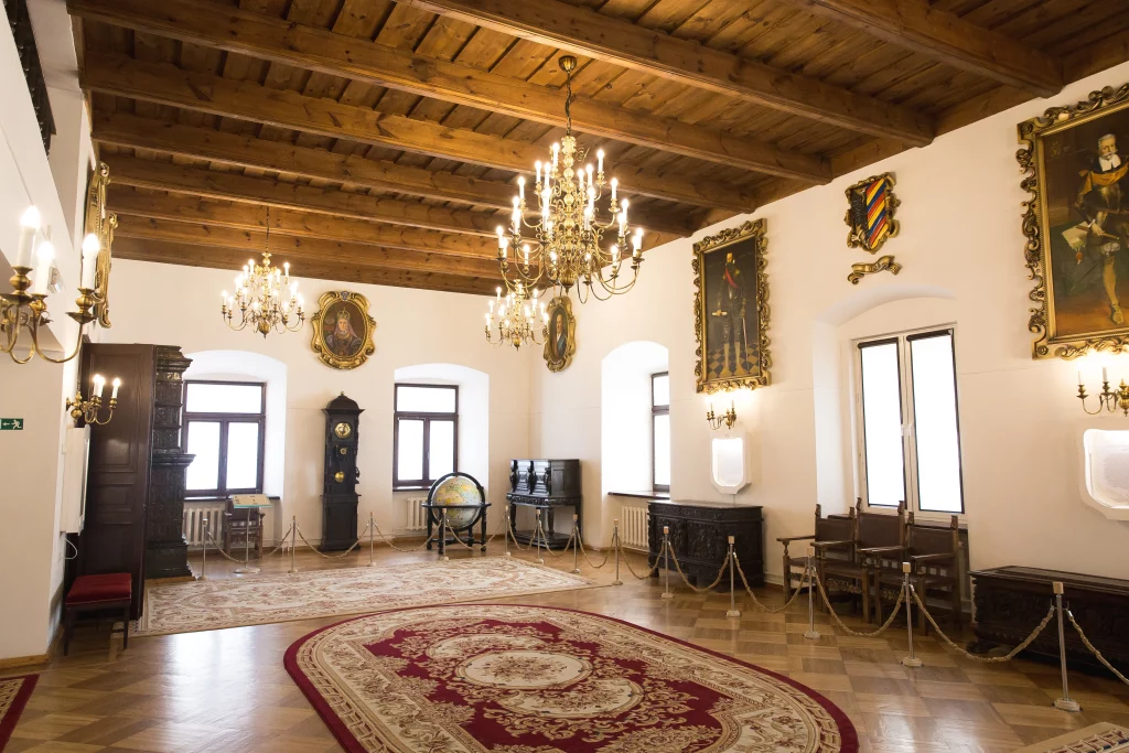 The Nesvizh Town Hall is the oldest among the buildings of the city government that have been preserved on the territory of Belarus. The grant of the Magdeburg Law to Nesvizh was signed in Grodno on April 23, 1586 by the King of the Polish-Lithuanian Commonwealth and the Grand Duke of Lithuania Stefan Batory. This gave the city full self-government, tax benefits, judicial immunity, favorable conditions for the work of artisans and merchants. At the same time, Nesvizh received his own coat of arms. In 1596, the town hall was built. In the “Magdeburg period” (the end of the XV century. – 1836) on the first floor there were trading shops, a city weighing room, a guard room, a weapons warehouse for citizens in case of danger, a special room for storing fire tools. The second floor was allocated for the magistrate’s offices – the hall of the rada, the court hall, the meeting room, the archive, the treasury, the offices of voit and burmasters were located here, and the city archive was also stored. During the Northern War, the town Hall burned, it was rebuilt in 1752. A large fire in 1836 caused irreparable damage to the building. From the end of the XIX century until 1939. here were the city Duma, the district headman, the police and city councils. From 1997 to 2004, large-scale restoration works were carried out in the Town Hall. As a result, the facades of the building acquired their original appearance, the upper tiers of the tower were restored, the city clock and the observation deck were decorated again (as in the XVI century), the interiors of the 2nd floor were reconstructed for the museum exhibition “City Self-government of Nesvizh of the XVIII-first half of the XIX centuries”.