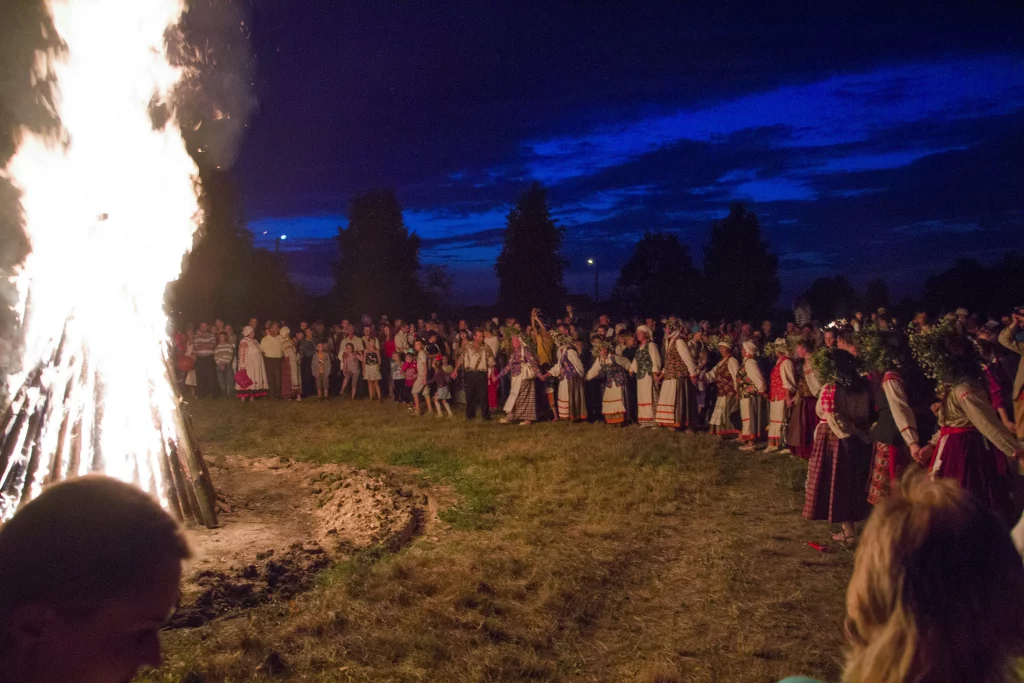 On one of the most mystical holidays of Kupala, children, grandchildren and great-grandchildren of local residents, numerous guests from other cities and villages come to the agro-town of Ananchitsy. As it should be according to custom, the villagers choose their Kupalinka-a beautiful, hardworking and cheerful girl. Towards nightfall, the villagers go to the river with lit torches to put wreaths on the water. The main attribute of the evening is lit – the Kupala bonfire, through which daredevils jump. Those who jumped higher and did not touch the flame will be happy all year. On this night, one more important custom is observed in Ananchitsy: young men in embroidered shirts carry a decorated raft to the river and let it float on the water. Local residents believe that troubles and misfortunes leave the village together with the raft floating away from the shore. It is also necessary to search for one of the most important symbols of the Kupala night — the fern flower. According to an ancient legend, it is on the night of Ivan Kupala that a fern blooms, and whoever finds this magical flower will be able to see the treasures hidden underground and learn to understand the language of animals.