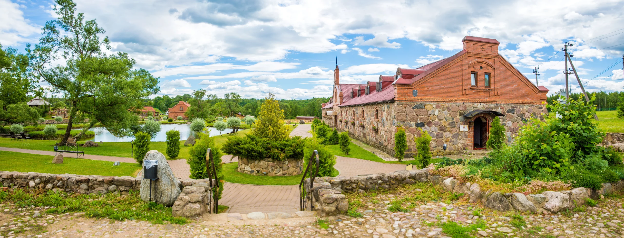 Products and objects from different eras of the history of Belarus are collected on the territory of the former estate. An installation of the varangian pier has been created in the park. The territory is surrounded by a stockade, and in the center is the elder’s house. Varangian boats are moored on the shore. In the Gothic Quarter, the Sula Tower of the XIV–XV centuries, a blacksmith shop, a stone and pottery workshop have been recreated. In the unique hall of gentry glory, one of the main exhibits is the “Gallery of Coats of Arms”, where the most famous emblems of the Belarusian gentry are collected. Near the preserved chopped house, a Belarusian place has been recreated, where you can visit a herbal pharmacy, a “Jewish house”, a weaving workshop and a museum of the Belarusian batleyka.