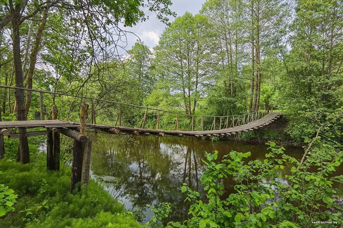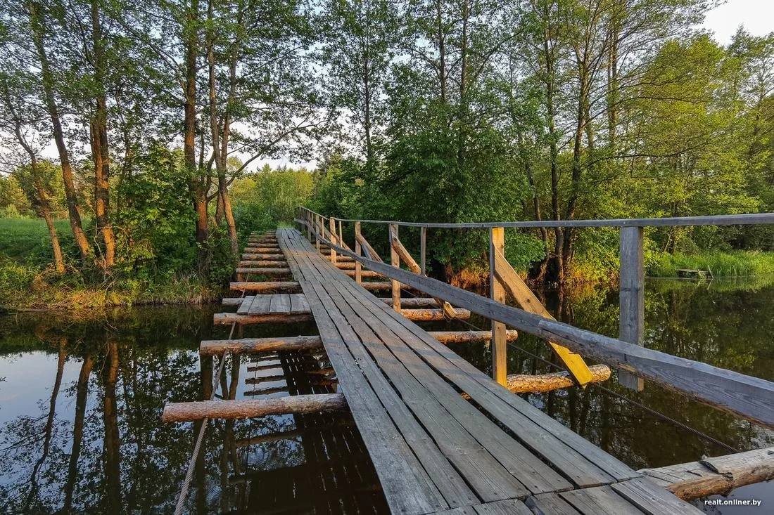 Several suspended wooden bridges over the Narochanka River have been preserved in the district. The construction of the bridges is based on two steel cables stretched parallel to each other, the ends of which are securely fixed underground. The cables are lifted with the help of special supports installed near the shore. Logs are laid perpendicular to the cables, and a boardwalk is laid on top of the logs.